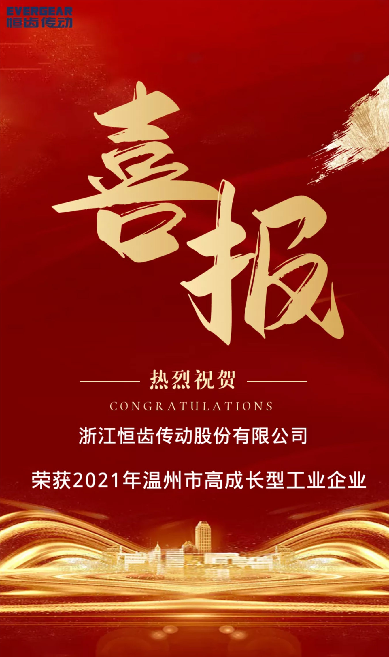 喜報|熱烈祝賀恒齒傳動榮獲2021年溫州市高成長型工業(yè)企業(yè)